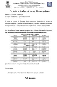 Nuestra IED, garantiza a los estudiantes una atención integral en su proceso educativo, por ello en la esta Sede además de la formación académica, se cuenta con el desarrollo de actividades complementarias en Jornada Completa (JC), así: para preescolar atendido por agentes educativas de la Caja de Compensación Familiar Colsubsidio quienes desarrollan su labor haciendo énfasis en actividades psicomotrices, recreativas y culturales; para primaria cuenta con la atención del IDRD en la realización de Centros de Interés (CI) deportivos, con docentes propios los CI artísticos, de una segunda lengua (Inglés) y el CI de medio ambiente, contribuyendo así al énfasis ambiental que pretende la Misión institucional, y la Banda de Marcha Infantil atendida por la Caja de Compensación Familiar Compensar e iniciando así la FORMACIÓN DE LÍDERES EN TRANSFORMACIÓN SOCIAL.